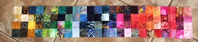 Thank you for your patience. Seven rows are done, 4 are in progress and 6 more are to do. I hope to get the finished ones into the mail next week and will notify the recipients when I have deposited them at the post office. Will think seriously about rows from a single cut of fabric, too.