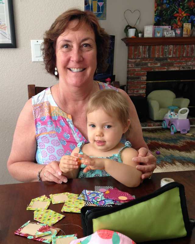 My new grandson is so cute! He's a big boy and already out of newborn sizes by his 3 week mark. I love him so! And here's a picture of me sewing with my 21 month old granddaughter. She's the big sister. She loved my thimble!