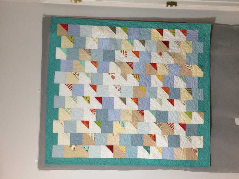 Last night there were tornado warnings and I had to stop in the middle of a decorative stitching on the binding for this quilt. I was able to finish it before bedtime though.
