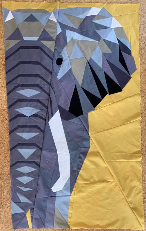 She has a new pattern out for a fractured horse / unicorn. I think a lot of people will have granddaughters asking for that rainbow unicorn. Looks a little easier, though, lesss fidley bits than the elephant. One thing to do-is avoid doing these things at half size. Am just know working on small a paper pieced project at 60% Would Not recommend using anything but batiks for these . You definitely want a thin, solidly woven fabric to keep keep the seams as thin as possible and not unraveling. Will post pictures later this spring.