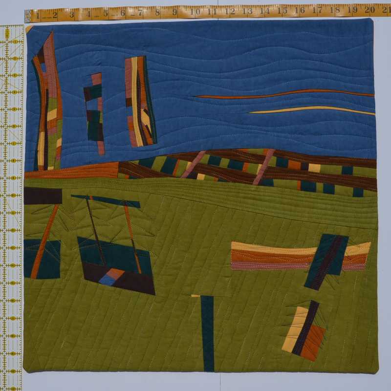 On a whim I decided to enter the Cherrywood Bob Ross challenge. This year the challenge was to make a 20" x 20" quilt using only the colors they provided. And Cherrywood decided how much of each color you got. I decided to make a quilt of our view out back. We have Cedars we planted, sage brush, then beyond that the 875 acre vineyard (not ours!), and beyond that the White Bluffs. The White Bluffs are horizontal and change color as the weather, time of day and seasons change. I enjoy making improv pieces and set to work. Here's a few pictures. I emailed the entry in and should hear something in Mid July. In any case, it was fun and challenging. I'm not good at specific sized requirements and limited color pallet. BTW, I couldn't make the White Bluffs horizontal as it just smashed into the vineyard and was a big mess. So my White Bluffs are vertical! I named this piece "Happy Hour View".