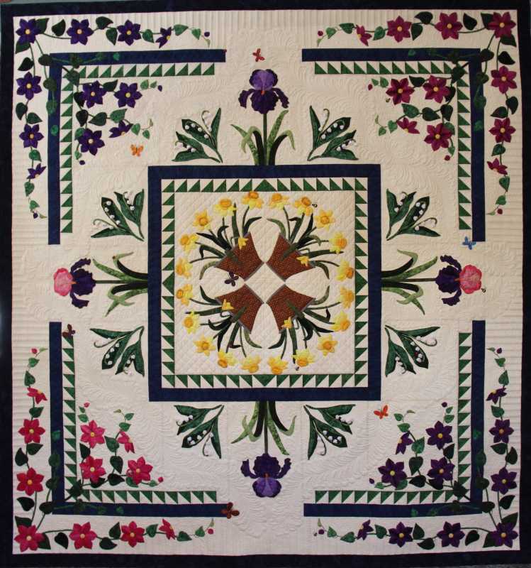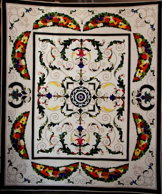 I have been finishing this quilt, it is also mostly applique along with couching, yoyo's, embroidery, etc. It has taken 2 years and will be starting at the local fair and then Colo. State Fair. I plan to enter it into Portland Expo in Sept. Its called Spring Explosion.