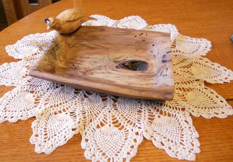 Here is a cute dish DH did and a custom hanger for a friends loon project. He'd like me in the shop more but I resist!