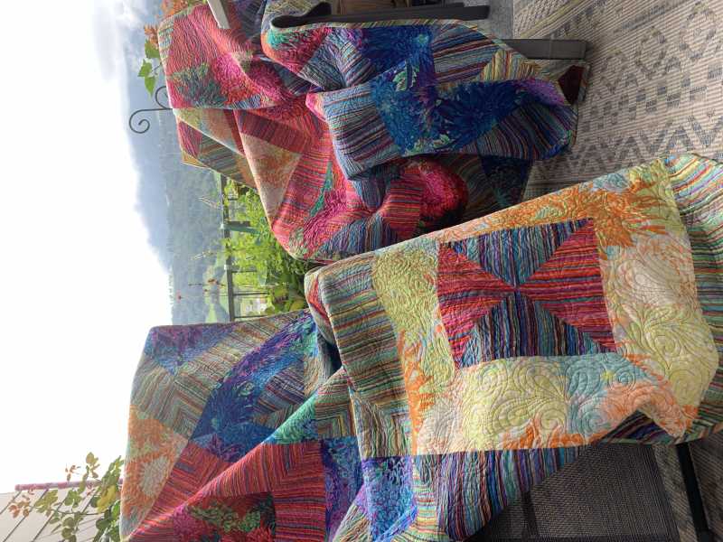 A couple of weeks ago was my godmum’s 65th wedding anniversary. I made them each a quilt - they love to sit out on the balcony enjoying the sun. On cooler days it’s good to bundle up