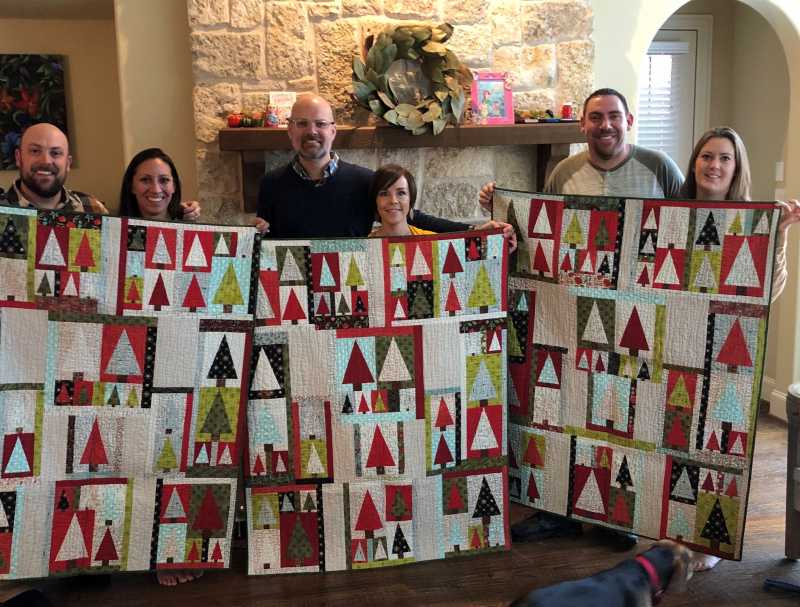 This month has been busy! For Thanksgiving week our entire family, less one daughter, met at our son's home in Texas. There were 14 of us! It was a wonderful time and I had so much fun hanging out with my kids, their spouses and the 6 grandchildren. I hated for the week to end. While there I was able to give the 3 families their Christmas quilt I made for them. I had sent my oldest daughter hers earlier with a promise not to tell her siblings about it. Well, they loved the quilts! Even more than I thought they would.