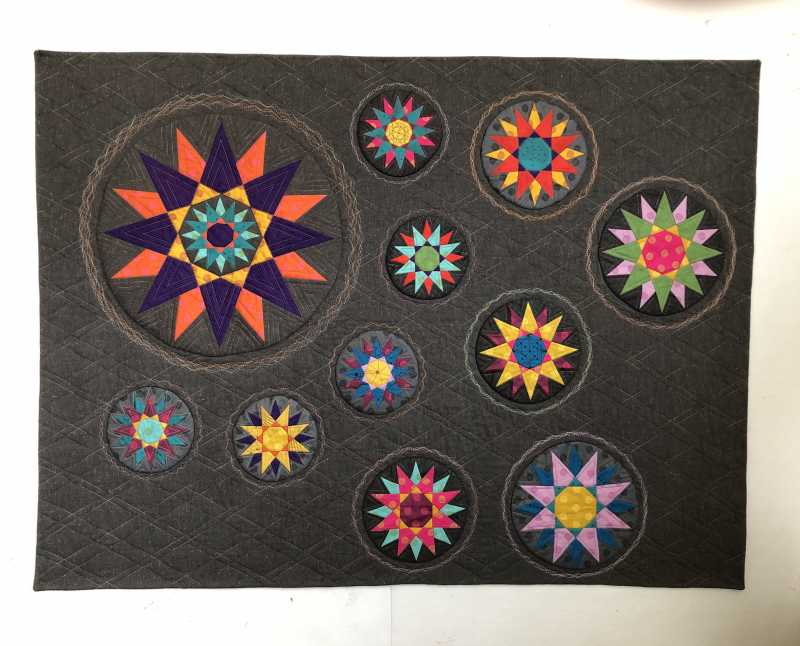Geneva, love both your quilts! Glad hubby is doing well-hope he keeps that regular rhythm going. Galaxy is very cool and I like the quilting you did on it.