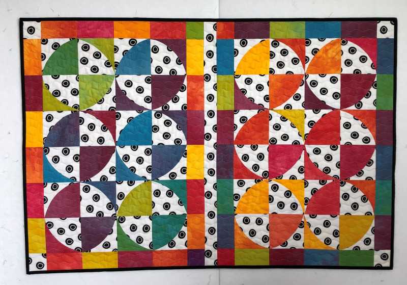 I'm trying to use up some hand dyes I did a few summers ago. I'm hoping to do more dyeing this summer. Here's an impromptu quilt made with drunkards path blocks and the hand dyes. I used a background I found in my stash. It was a backing for another quilt. It's called "Twins!!"