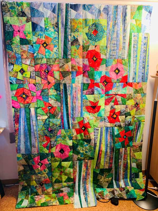I have been working on a "let's see what it will turn into" corona project by and with Claudia Pfeil, here's where I'm at now still needs more sky and various thing appliqued before I can even think about the quilting - some of the people doing the project are just about ready to bind - but with a few more weekends and maybe a week's vacation or so - I will get there eventuelly.
