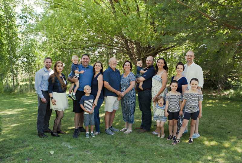 I was born on November 13th, and turned 13 and 30 on Friday the 13th. I was raised in Southern California and after marrying my husband, BC, almost 36 years ago, I've lived all over the country. Indiana, Northern and Southern California and now Eastern Washington. We live on the far right bottom corner of Washington. It's a desert landscape where all those lovely apples, wine grapes, hops and so much more are grown. We've also lived on the "wet side" a couple of times. When it cam time to retire, we wanted a slower pace, not so much rain and cheaper cost of living. So we picked the Tri Cities. We love it here. We have 4 children, 3 with spouses and 6 granchildren. Here's a picture of all of us. (Sadly our oldest daughter and her husband pictured here on the far left are divorcing.)
