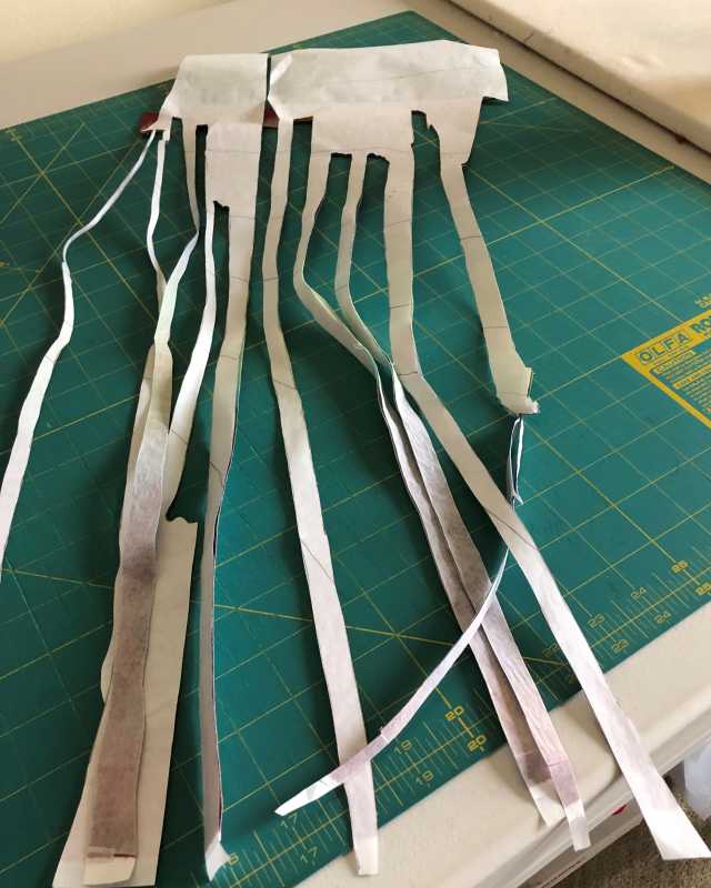 And here are all the little freezer paper cut pieces that I carefully placed onto the background I had chosen.