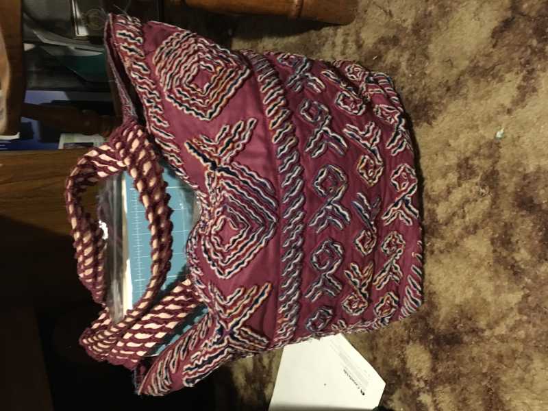 I won’t be doing the design on the bag again, far to many short cuts. All the cuts need to be on the bias and I start making the hole with my seam ripper and then swap to small scissors.