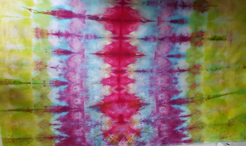 We havent had snow but i didnt want to be left out on all the snow dyeing thats been going on so i made cubes in the freezer. I folded and tiex fabric sorinkled dye on and covered with ice cubes and left out side overnight. Hey oresto