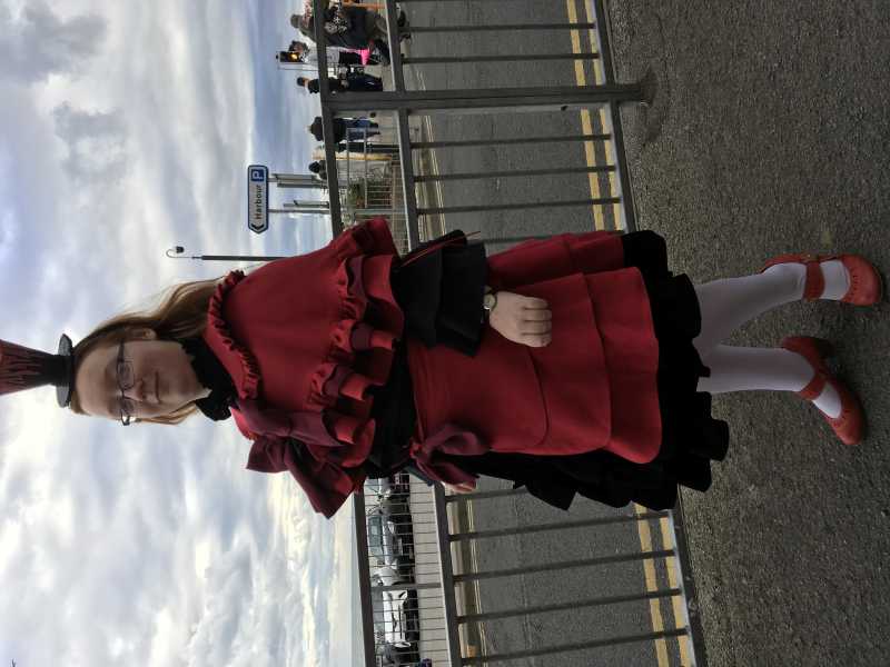 Nearly ended up pulling an all nighter, because it was wanted for yesterday, but managed to get to bed before 4am :P . Izzy is in love with it and doesn't want to take it off. What is good about it is that it is 4 separate pieces and she will be able to wear the black blouse and skirt as separates.