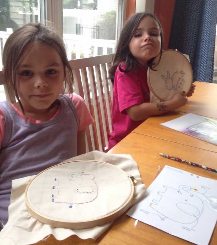 Hello everyone! Hope this finds you well and happy. I am back from the east coast. We were taking care of our 8 and 6 year old granddaughters while their parents went on a tenth anniversary trip. It was such fun. I brought them an embroidery project and we had fun working on them. Aren't they sweet?! :kiss: