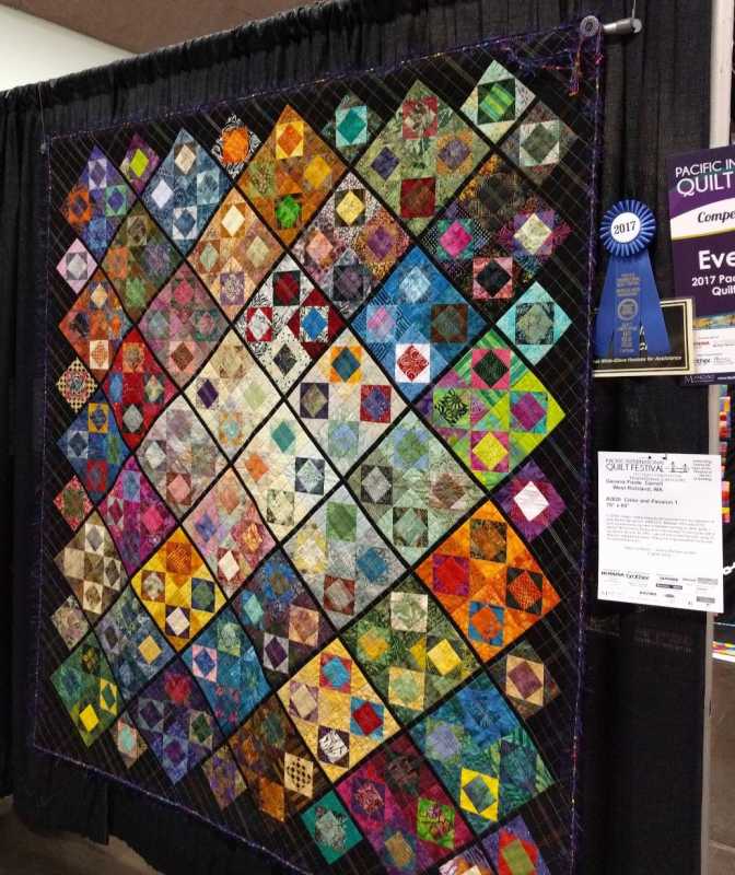 Thanks to Sharon and her husband Jerry I have a picture of my quilts at Pacific International Quilt Fest! Color and Passion 1 won "Best Use Of Color." yay! It's so nice to have a picture of the quilt with the ribbon. Thank you Sharon!! And Sharon won a ribbon also! I'll let her share it with you.