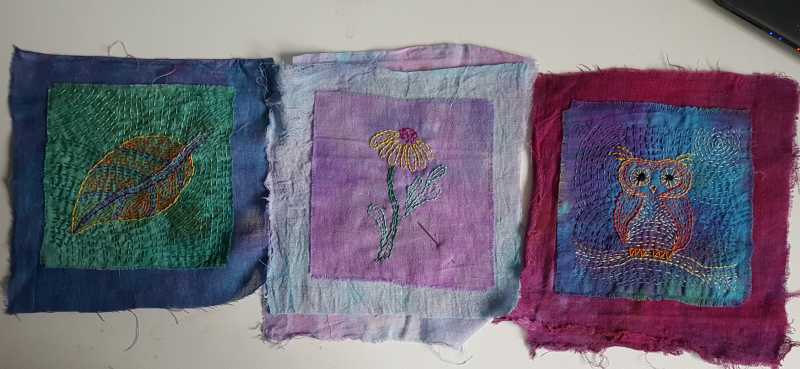 I'm busy making my IMQE quilt and would love to share it but we have to keep it to ourselves at the moment. I've been busy with the new group I started in Belper and gave a session last week on Kantha stitching. I've had good feedback, it was fun as we used hand dyed cotton and butter muslin.