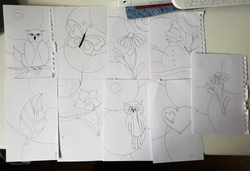 These are my teaching samples. The owl was made in a class then I drew my own patterns and made it my own before sharing with others and gave them all the details of my teachers website kits etc.,
