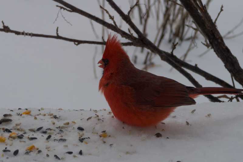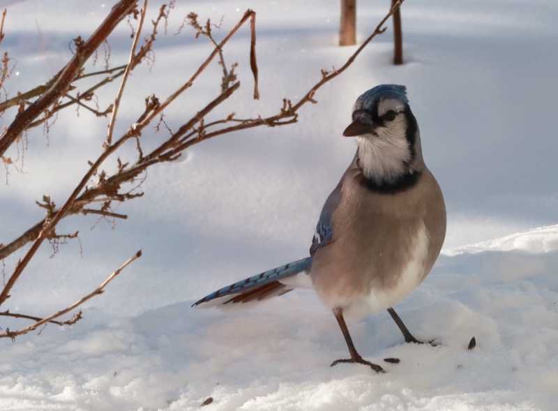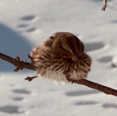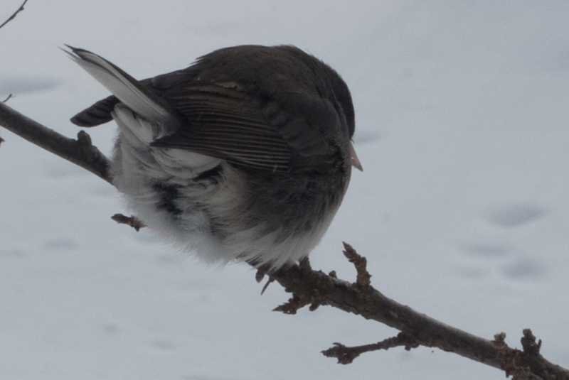 The birds, mainly Robins, Bluejays, Chickadees and Sparrows, have been transformed into fluffballs and are happily munching up all the seeds we put out.