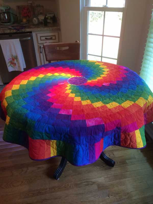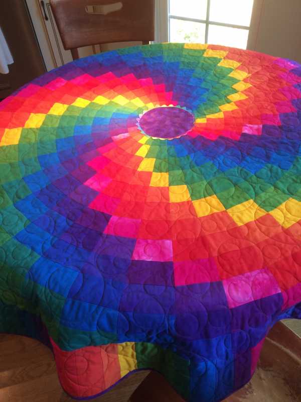 This was requested by my 'hippy girl'. I couldn’t find the colors that she wanted, so I spent the first several days getting 12 yards of cloth dyed. I really wonder if these kids ever think there’s something I can’t accomplish!!! Now my little Munchkin Molly thinks that her bed needs something similar. She'll be 8 on December 7th, so it might be a quilt for her dolls with less movement?!