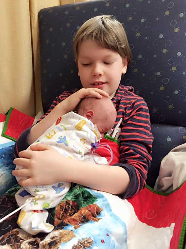 Here's 10-day old Alfie with his 10-year old cousin, Noah: