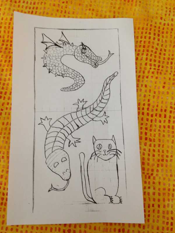 I have a pattern of a lizard that I used for Gabe's quilt. This is a photo of it. The paper it is on is about 36"w and the lizard is about 48" long.
