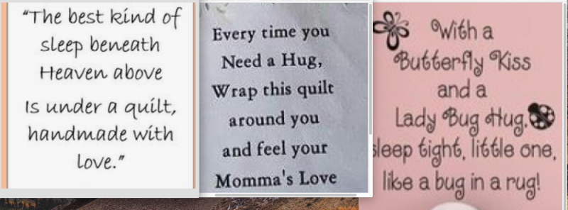 I like the label to include a saying and sometimes a poem along with name of the person receiving the quilt .