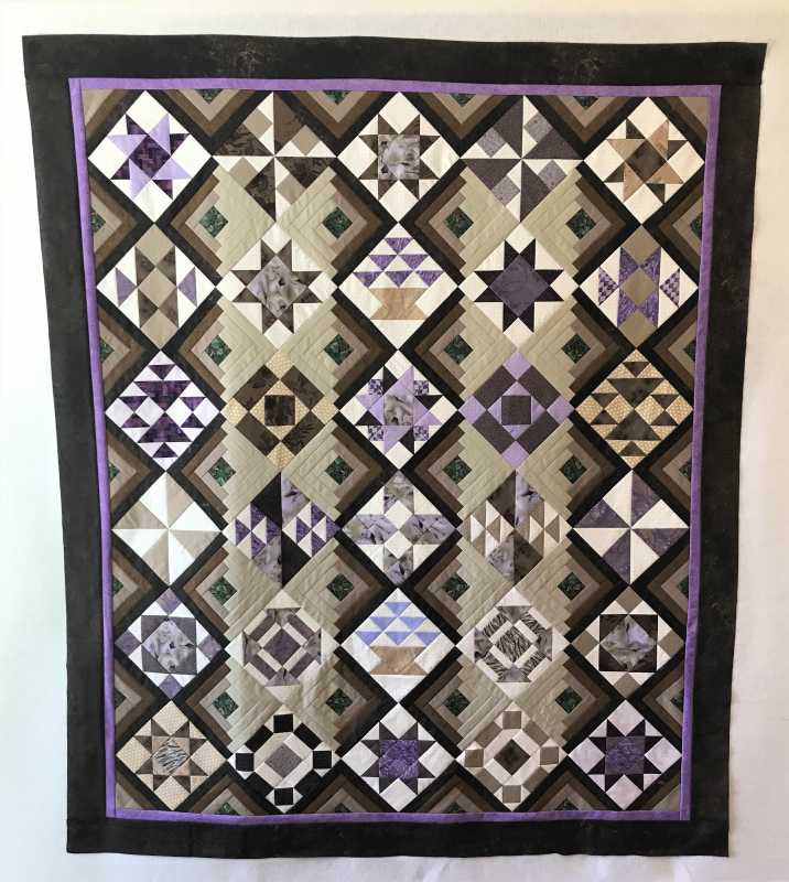 Here's mine. It's "Not a Kaffe Mystery Qulit" :cheer: Worked from my stash, and challenged myself to feature purple, as I am not normally drawn to that color. I learned a lot about using purple, but learned even more seeing the very colorful quilts that everyone was making. Thanks Alex for leading us through this project, and to Barbara for helping so many of us learn the ropes forum-wise.