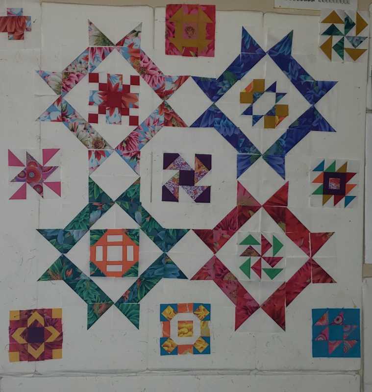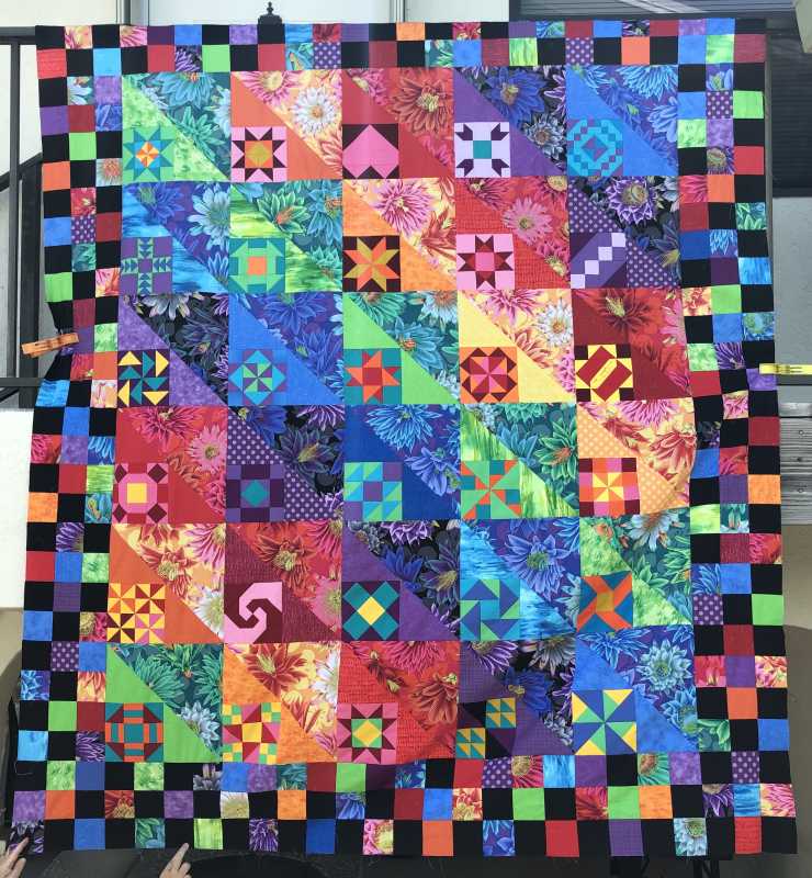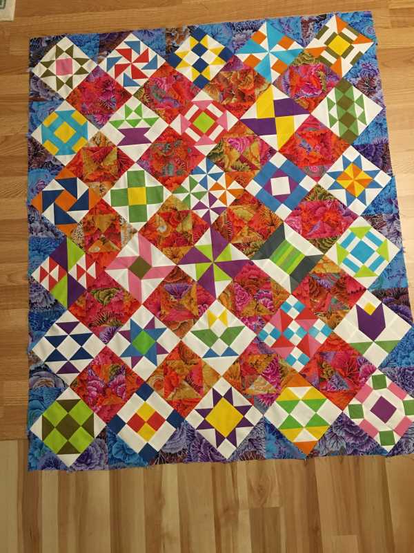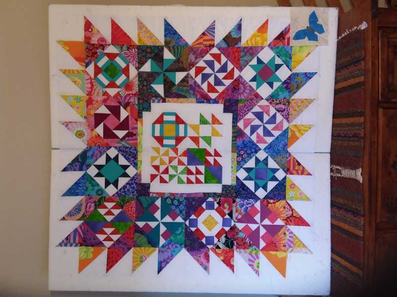 Made every mistake you mentioned.as we went along. But perfected my piecing, used math for layouts and learned not to give up and accept a few lost points here and there. I'm hanging this baby on my wall to remind me to keep on learning. Thanks Alex and Barbara.. Ready to quilt with your ideas and bind it with every little scrap I have left