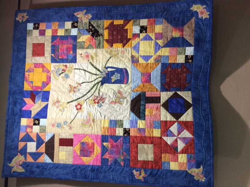 I so enjoyed working with Alex on this project. I used my stash for my fabric. I learned a lot about accuracy when piecing. I used machine appliqués for my center deign. My quilt is named Butterflies in flight. Thank you for all your kind videos it helped get through this COVID 19. In 2020