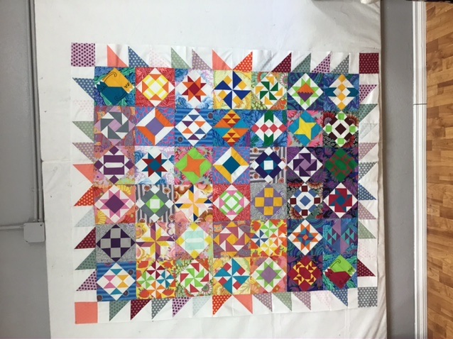 My Mystery Quilt top is done but I have had trouble posting the picture. It was very challenging and stressful but I accomplished it.. I learned alot from the color wheel and worked with Kaffe Fasset fabrics.. The solid colors were not in my comfort zone but with the Help of Alex tips and lessons, I accomplished it.. Thank you Alex for taking your time and giving us a distraction from the worldly problems.