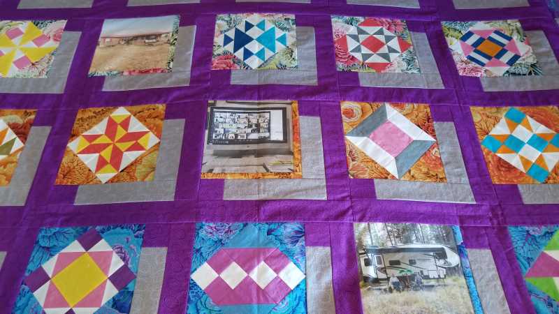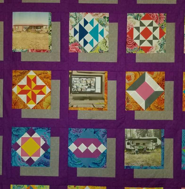 Well my quilt top is done. It measures 77 1/2" x 88". It was made for the queen bed in our camper but will be used on our king bed in the house during the winter. I will probably send it out to have it quilted... unless Alex would like to straight line quilt it for me?!? :P Too big for my domestic machine or my abilities! Thank you Alex for giving us such a fun project for our difficult summer. The 3 pictures represent how i spent my covid summer. Home, zoom, and camping!