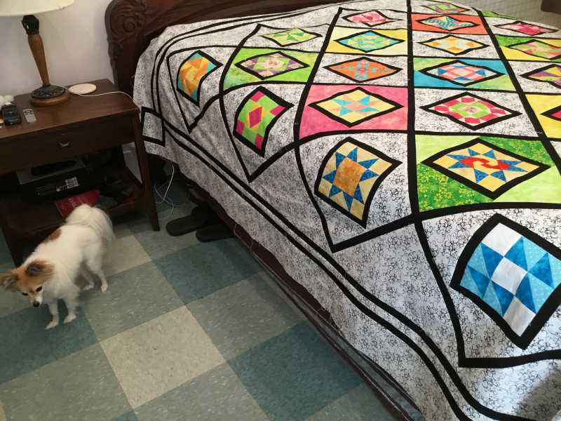 Okay, with all the positive support, the border is done. Much happier after the border is completed. It’s hard to see the stars in the picture but they are more visible in person. Thank you Alex. I have learned SEW much in these lessons. The information has taken my skills up from Beginner to advanced beginner. Thanks for all your encouragement.