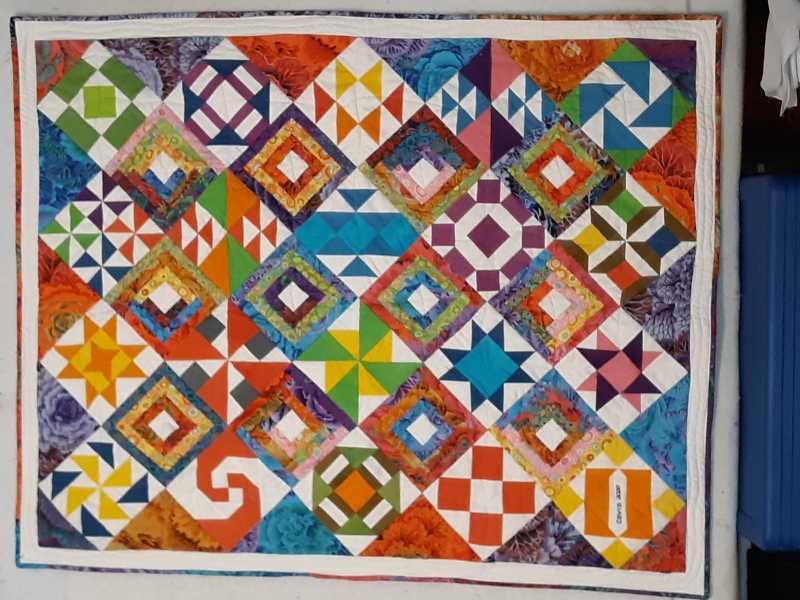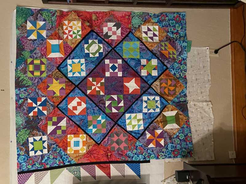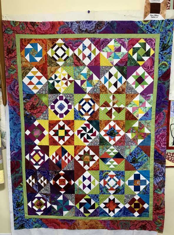 Thank you, Alex. I have learned so much. I used the color wheel & Kaffe fabrics to learn how and why colors combinations work and don’t work, my accuracy has improved, and I made and used a design board. The layout was a struggle. It is a good thing I am not a perfectionist or it would never have gotten done. Looking forward to the Basket Puzzle quilt but will be using fabrics from my stash.