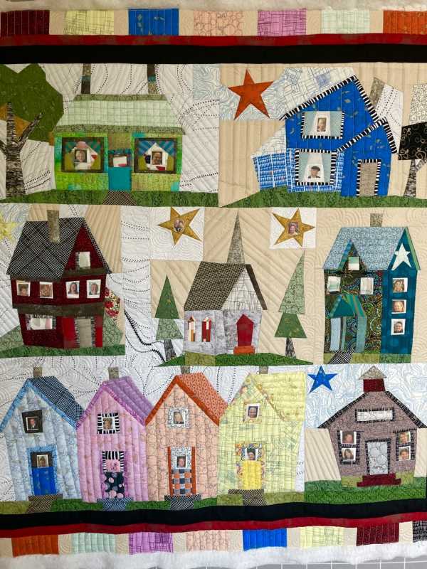 Since you enjoy seeing houses during this Covid year, I wanted to share with you and the viewers my paper-pieced Covid House quilt. IN each window I have a picture of our family members in their houses. While we have been apart, we are together in love! Even our parents in heaven are on the quilt. I plan to finish it with tiny buttons securing the binding.... Happy Holidays and stay safe, Anita