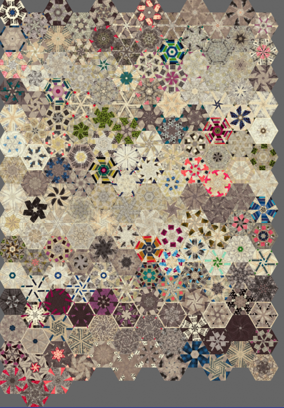 with Hexagons. So I took your picture of the panel and ran it thru the Design website and this is what a quilt of Hexagons would look like with your panels.
