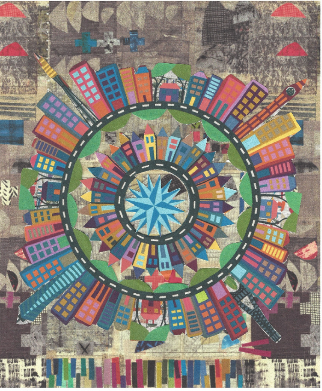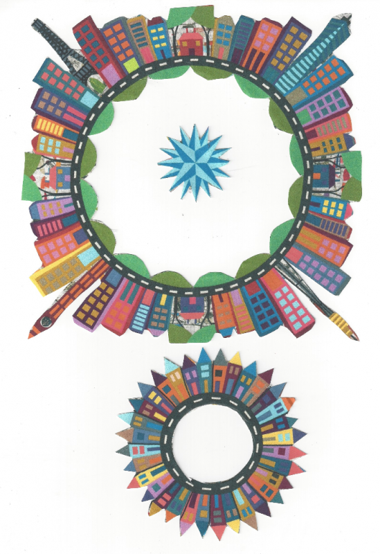 lighter sections to use in the center and small house background, and use the darker areas for the background of buildings. The piano key colors