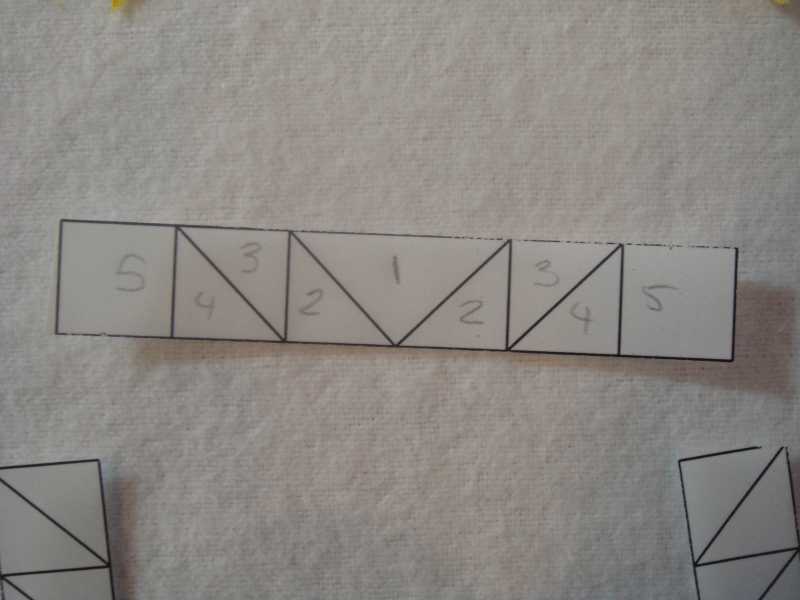 3rd row (#5): 2 squares 3” x 3” cut in half diagonally