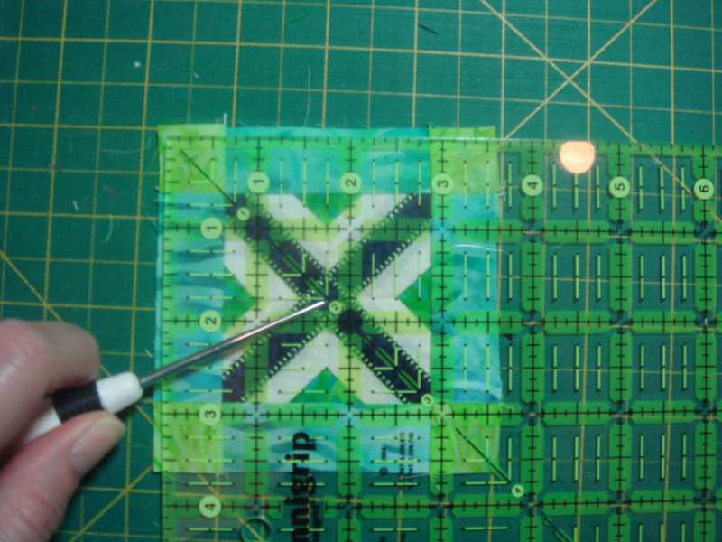 Step 7: Trim the block to 3-1/2” square (3” x 3” finished), making sure the 1-3/4” mark is in the center.