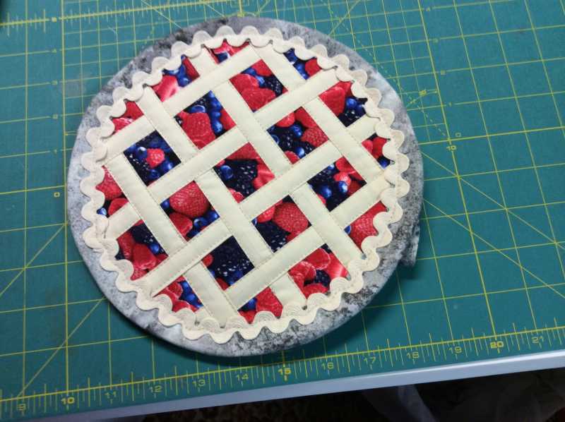 The pies are "grandma dots fruit pies" and the cup cake is " hot cakes" from Susie shore designs. I got the patters at a local quilt shop, but try using google to find them online
