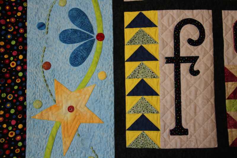 Renata, I did what Janet did on her quilt. I shadow quilted all the letters around the border. If you follow the machine embroidery every so often is a letter. It's very subtle, but looks great on the quilt. The "a" starts on the left side by the tree and then goes around with the "z" ending back on the left border tree.