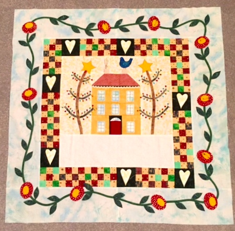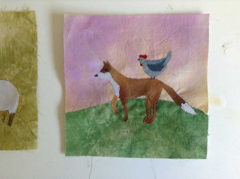 You wanted to see how I am doing Wendy - here it is. My sheep are so white on the snowy lawn that you can't seem them :lol: Only joking, I haven't done them yet. I have used sequins for the trees but plan to undo that before quilting it, I just couldn't stand the look of the trunks on their own because they looked like cacti. Fox and hen don't have their details yet. Still lots to do. This is not half-size BTW so I should probably have posted it somewhere else sorry. :dry:
