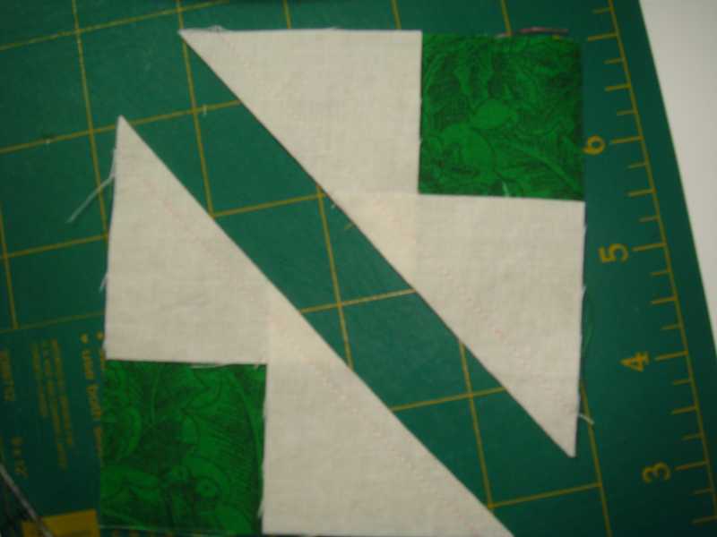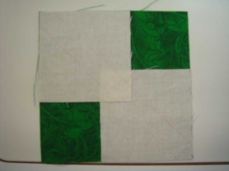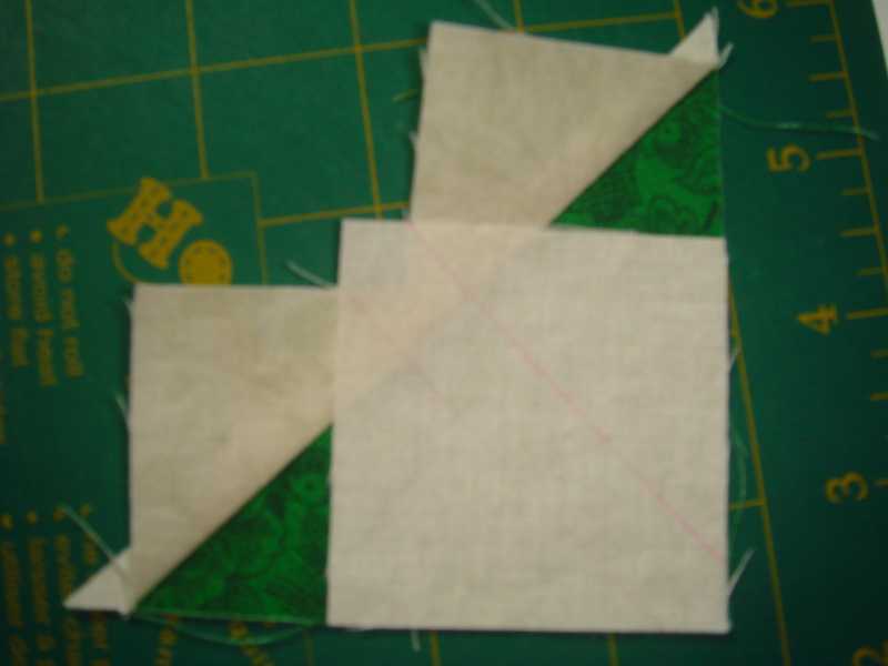 Press seam allowance towardsthe "sky" and place the 2nd square at the other end. Sew on the line.