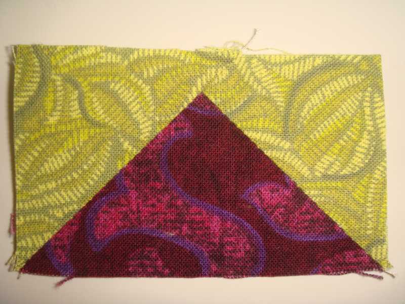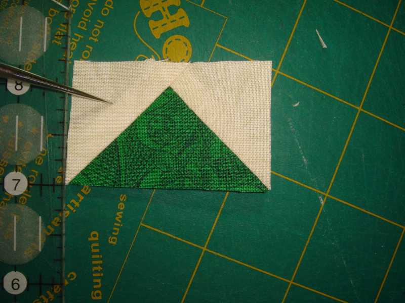 place a square at the end of the 2-7/8 rectangle. Sew on the line.