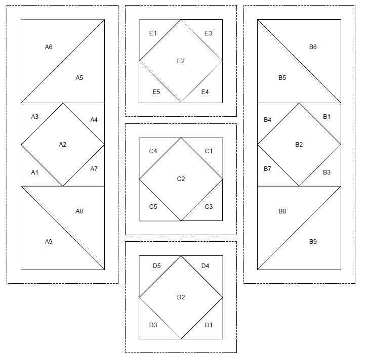 Well, I do not have the cutting measurements... I have used EQ7, and paper-pieced the block. If anyone needs the Template, let me know - send me an email.