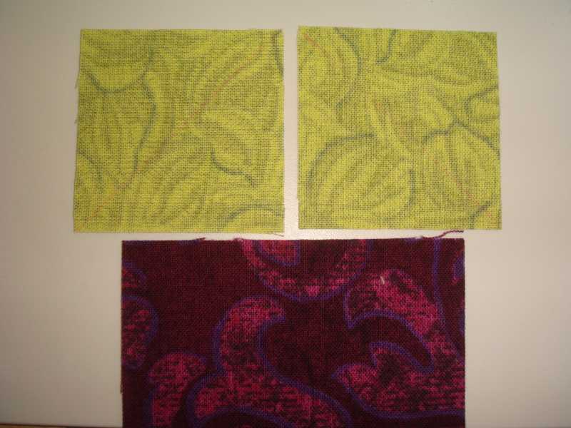 4 squares 2-1/4" each (color and background) - this is oversized, for the HST.