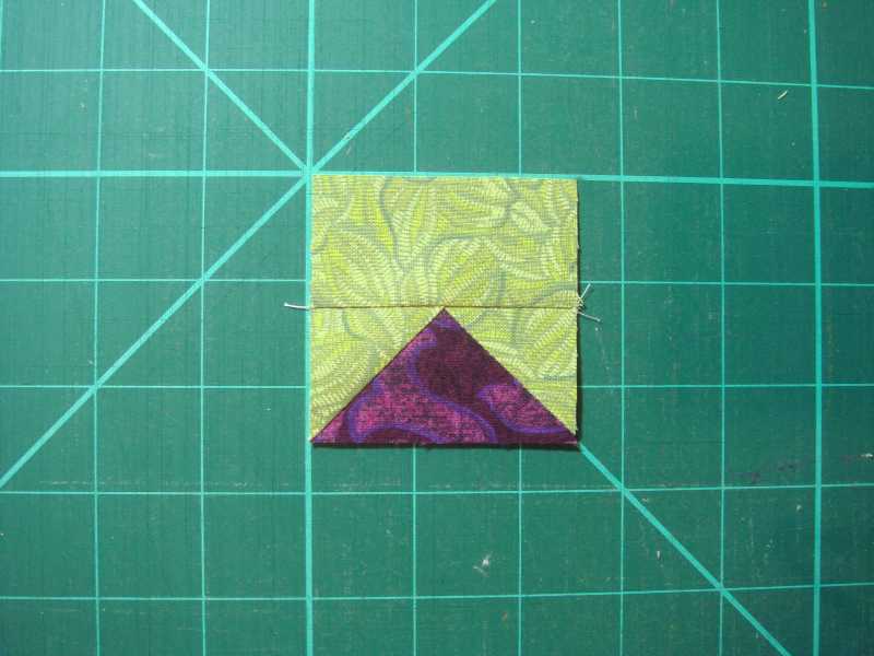 Sew the 2-1/2 x 1-3/4 rectangle to the flying geese, and press to the rectangle.