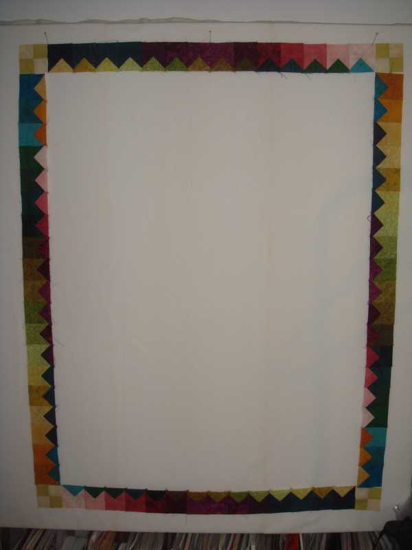 My final border is finished. The top and bottom should measure 28-1/2 ", but mine measures 28-7/8 "... So, my 1/4 inch is a "hair" too scant... Same with the 2 sides. I'll leave it like this. The "plain" row between the blocks and this border will be used to make everything fit together! :cheer: