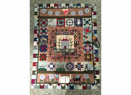 I LOVE it. As you can see the rotary cutter on the right side is for scale. Thanks to all who posted throughout the year and especially Andree who emailed me the paper pieced pattern and all her hard work with pictures and calculations. I could have not done it without her!