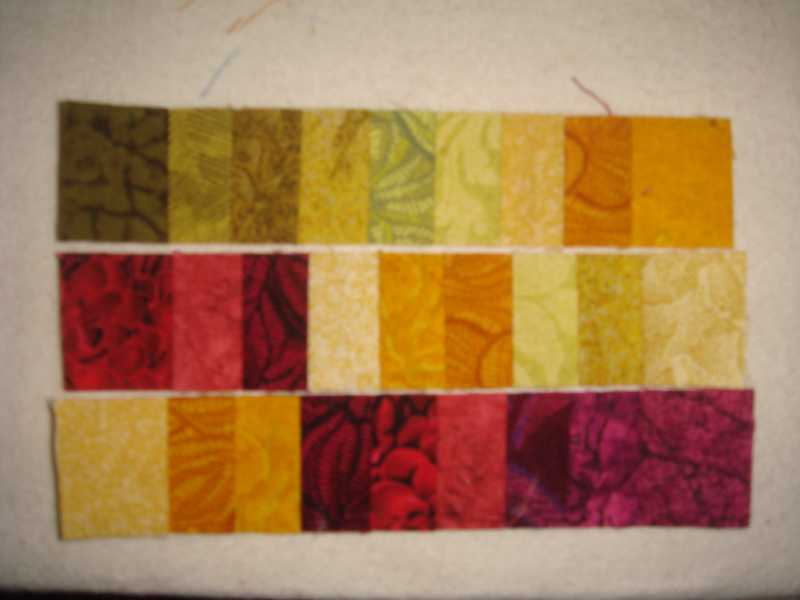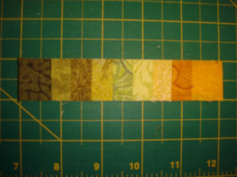 I cut the "squares" (which in regular piecing would have been 1" x 1") actually 1-1/4 wide x 1" long, just to make sure that I have enough on each side (more than the 1/4 inch)when I paper-piece.
