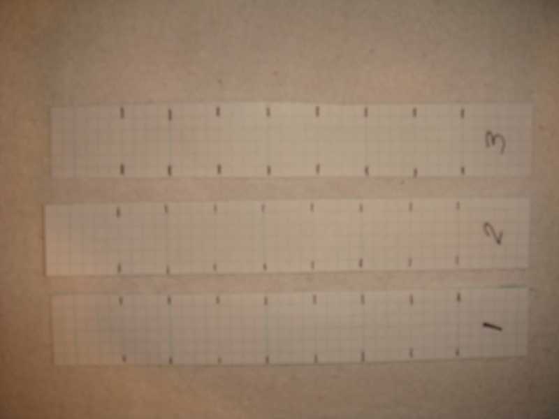 I cut graph paper to the required lenght -in this case 9 x 1/2"+ seam allowance at both end = 5"long, and for the width, I could have cut 1/2 inch, but I find this to be less stable so I added 1/8 on each side.